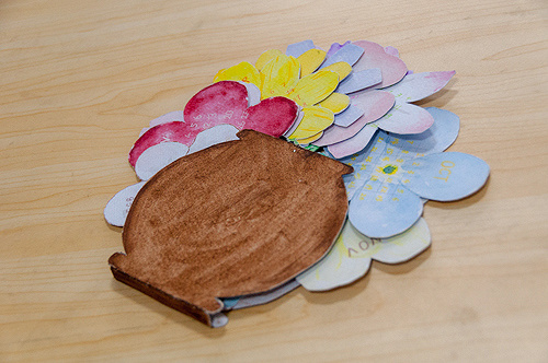 所用材料:纸,水彩,大头钉,双面胶